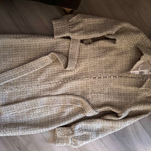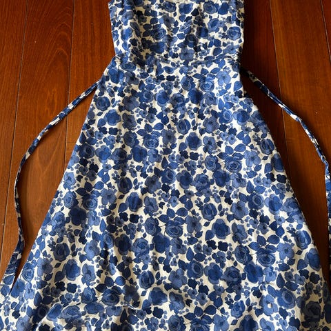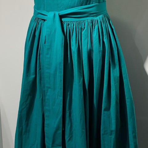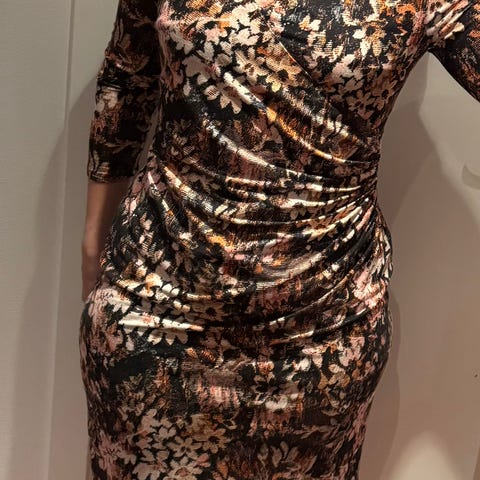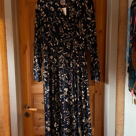 Laura Ashley kjole til spesiell anledning i flerfarget blomstrete bomull. Kjolen er i størrelse 38 og egnet for kvinner. Brukt få ganger 83% bomull og 17% ull.