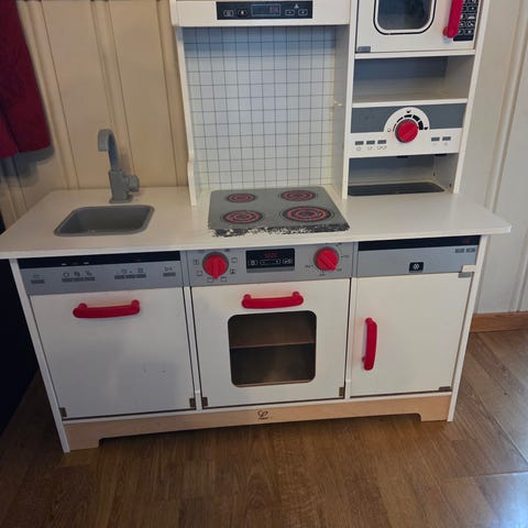 Pent lekekjøkken fra Kidkraft. Noen bruksmerker (se bilder). Følges med diverse av utstyr til kjøkkenet. Hentes i Porsgrunn.