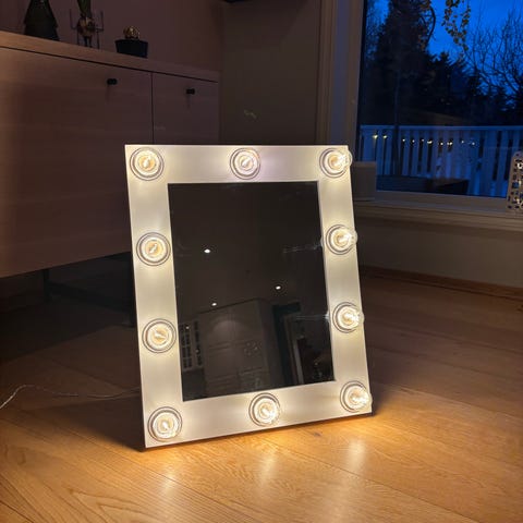 Sminkespeil med 8 lys som drives av 3x AA-batteri. (Batteri medfølger ikke).