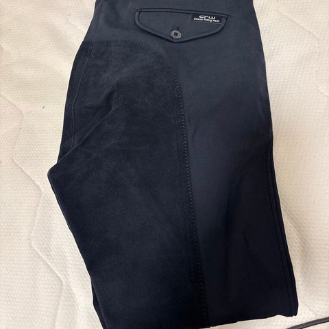 Svarte Ridebukser fra CRW selges da de ikke passet. De er en størrelse 42, men litt små i størrelsen så vil nok passe bedre som en 38/40. Original prisen er 999kr, men selges for 499kr. Den kommer med glidelås foran, stropper til belte og romslige lommer.