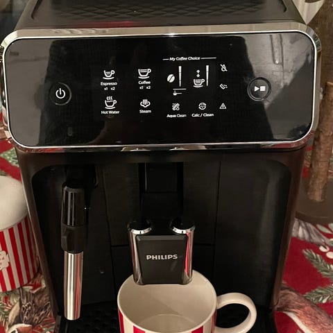 DeLonghi PrimaDonna Exclusive kaffemaskin med integrert melkeskummer og digitalt display. Maskinen har flere bryggevalg og justerbare innstillinger for kaffe og melk. Selger videre fordi jeg fikk en ny maskin. Denne har problemer med oppvarming og trenger service før den kan brukes, selges derfor til redusert pris. Bortsett fra dette er den i god stand. Nypris: kr 13 540.