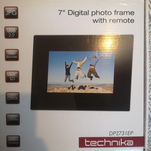 Strømforsyningen skjer via en standard stikkontakt og en strømadapter er inkludert. Produktet er ideelt for å vise feriebilder, familiebilder eller andre typer bilder som du ønsker å dele eller vise hjemme eller på kontoret.