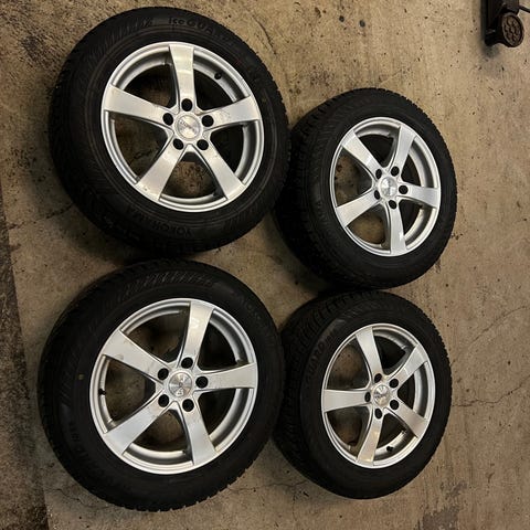 Selger 4 stk veldig fine komplette vinterhjul. Rial M10 felger med Yokohama IceGuard IG65 piggdekk. Mønsterdybde er rundt 8mm.
