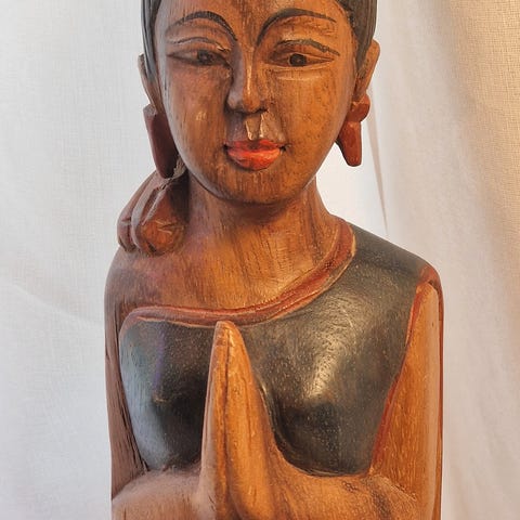 vintage håndskåret treplate som skildrer en bibelsk scene,Adam og Eva i Edens hage.
