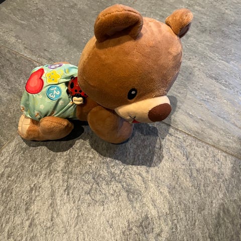 Fisher-Price kosedyr i form av en løve. Laget av mykt materiale, egnet for barn.