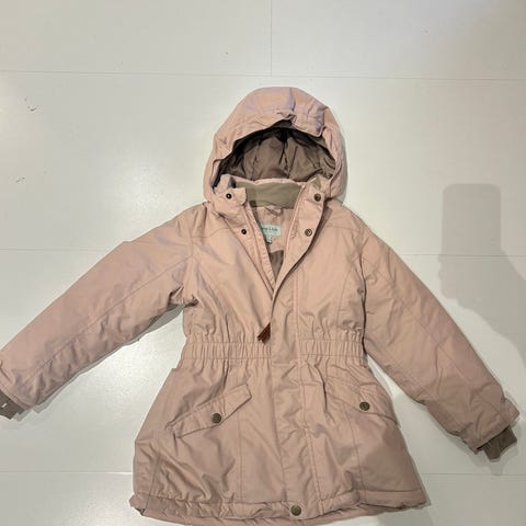 Så fin og varm vinterjakke i str. 128. Dus rosa. Uten skader.