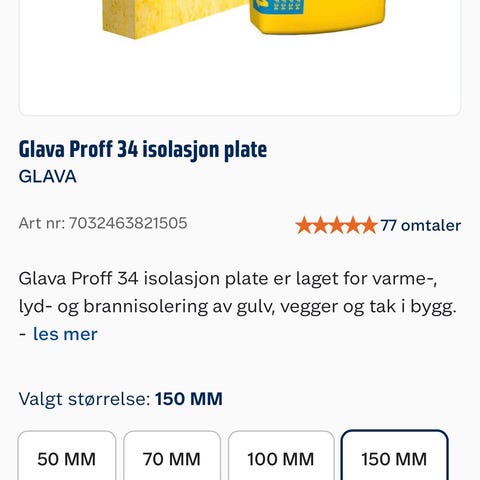 Glava Økonomi 38 100x60,5x1200 mm. Pakken inneholder 7,26 m²/pakke