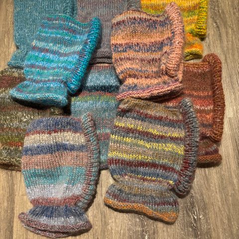 Strikket med dobbel tråd i Påfugl-garn. Lett og varm mohairull som ikke klør.