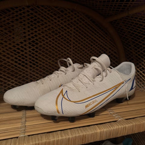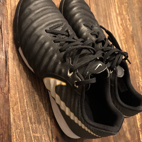Nike fotballsko i størrelse 45 med svart og rød farge. Skoene har knotter under sålen for bedre grep på gressbaner.