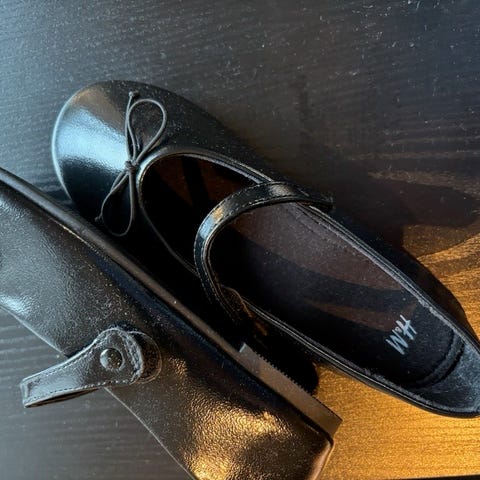 H&M ballerina sko i størrelse 32. Skoene er svarte med glitterdetaljer og har en sløyfe på forsiden. Pent og lite brukt.