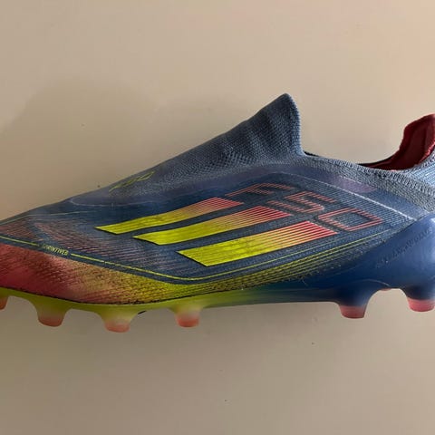 Adidas F50 Elite AG fotballsko i størrelse 40. Fargene er hvit, svart og gul. Skoene er designet for bruk på kunstgress (AG). Laget i Vietnam.