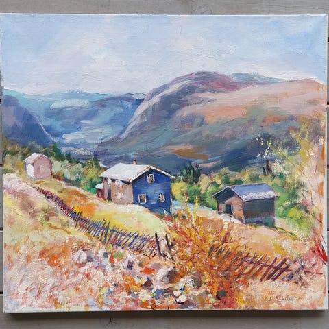 Chris Dahl oljemaleri som viser et landskap med trær, lokasjon er Gamle Frognerbekken i Oslo. Maleriet har en ramme og er signert av kunstneren Chris. Dahl.