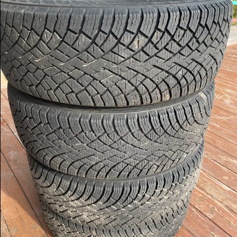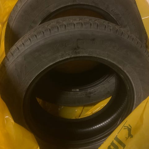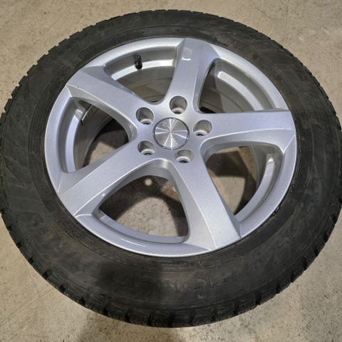 To vinterdekk med felger selges. De ble brukt i en uke og deretter ikke brukt. Kvittering for dekkkjøpet fra forhandleren foreligger.