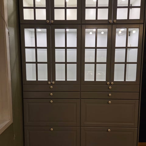 Pent brukt deler av kjøkkenskap selges. Øvre skap har innvendig belysning med dimmer. Under skapet er det to LED lys lister (følger ikke med), men selve opplegget følger med.
