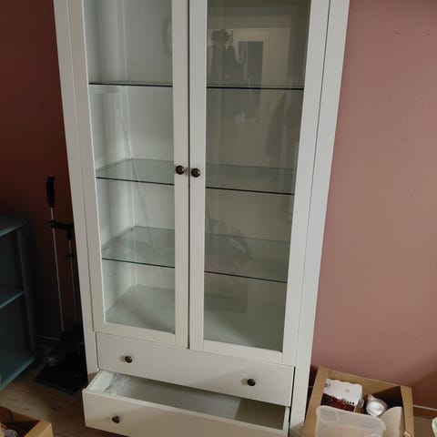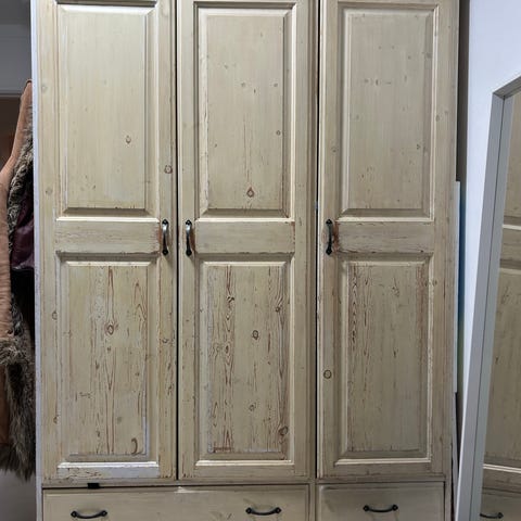 Hjørneskap i furu gis bort mot henting. Er malt hvitt. Kan hentes mellom 5.-6. januar.