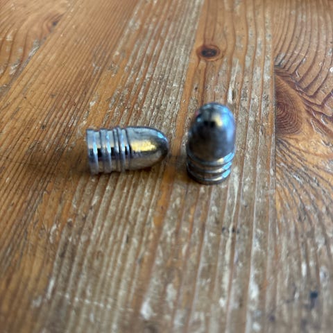 Rundkuler av reint bly til grovare kaliber svartkruttvåpen. Kr 5,- / stk. sender om kjøpar betalar frakt.