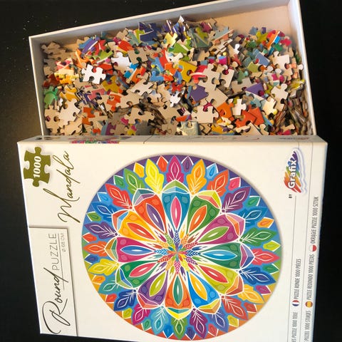 Grafix Round Puzzle Solsikker er et puslespill med 1000 brikker. Motivet viser solsikker og noen frukter på et mørkt bakgrunn. Puslespillet har rund form og er laget for voksne og eldre barn.😎🧩