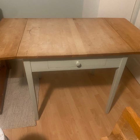 Sjarmerende bord som tar liten plass når klaffene er nedslått . Kun 38 cm dypt.