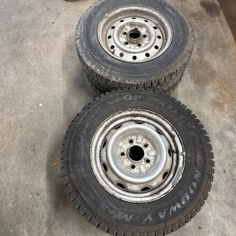 Stålfelger til Hiace. En del rust men brukbart. 8stykk. 4 nokså greie, 4 ganske rusten.