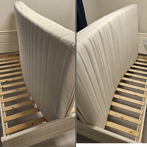 Brukt som gjesteseng (uten gavel). Selges pga. flytting. Vil bli renset før overlevering.
