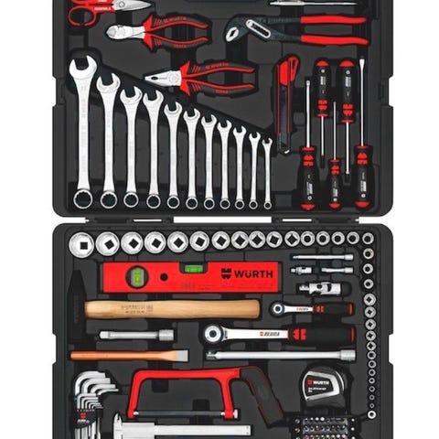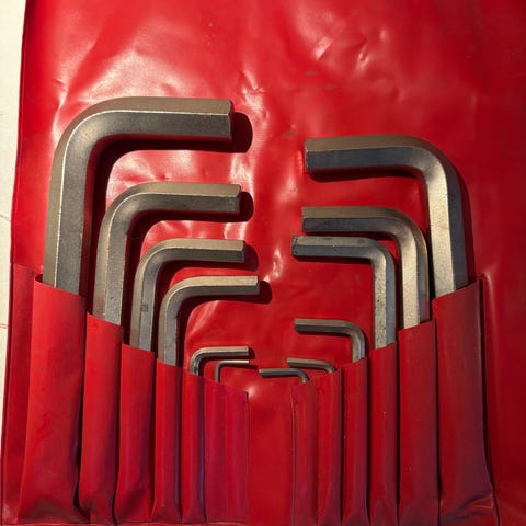 Settet består av flere justerbare brotsjer i ulike størrelser. Generelt normal bruksslitasje etter alder, men pent bevart og komplett kasse.