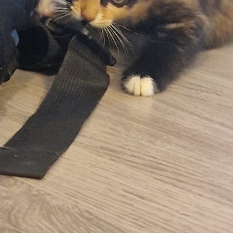 Hun er født ute, så hun er ikke 100% tam ennå. Prioriterer derfor kjøper med erfaring med katt fra før. Hun kommer til å bli fort tam og kosete i trygge omgivelser 🥰