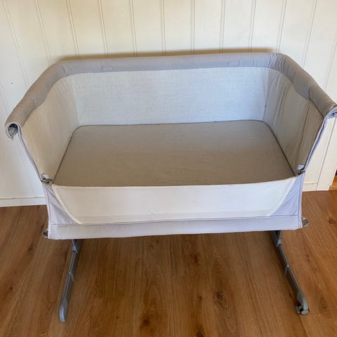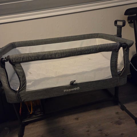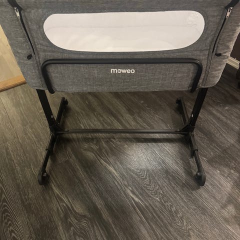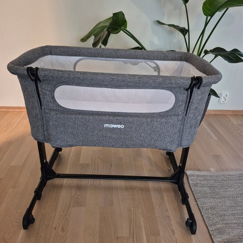 Moweo Bedside crib i fin stand.