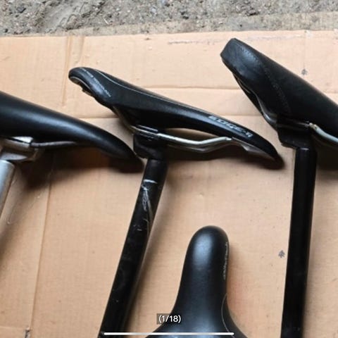 6 stk sykkelsete med setepinne . En på ca cm og andre 2,5 cm