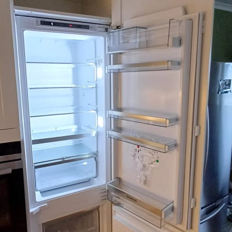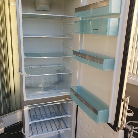 Pent brukt stillegående Samsung kombiskap med innvendig LED lys og alle originale tilbehør (hyller, skuffer og glass hylleplater) er til salgs.
