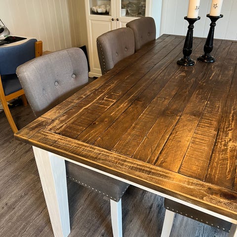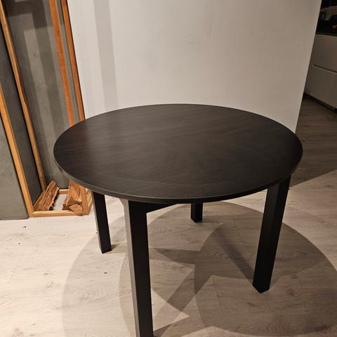 Selger et plettfritt rundt spisestuebord, kjøpt helt nytt av oss for ca et halvt år siden. Null merker og skader! Ferdig demontert. Alle skruer er med og ingen skade på dem heller. Selges da det ikke passet i ny leilighet.