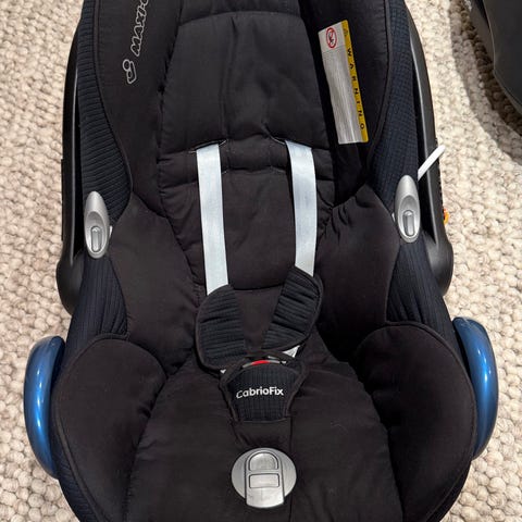 Maxi-cosi bilsete uten base, med nyfødt innlegg. Aldri vært i kollisjon. Usikker på hvor gammel stolen er. Nyvasket trekk. Kan hentes på Sandnes om ønskelig.