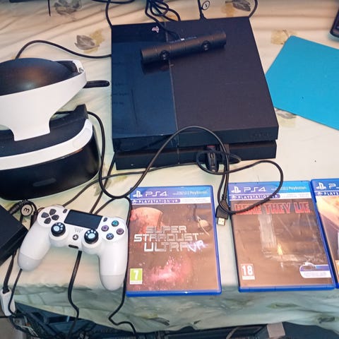 Selger en PlayStation 4 med PlayStation VR og tilbehør, som vist på bildene. Alt fungerer som det skal.