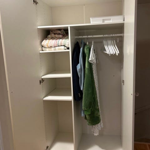 De grønne boksene på øverste hylle følger IKKE med, ellers følger alle hyller, skuffer osv med.