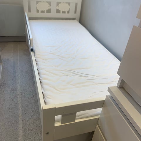 Svært lite brukt, alltid med madrassbeskyttelse.