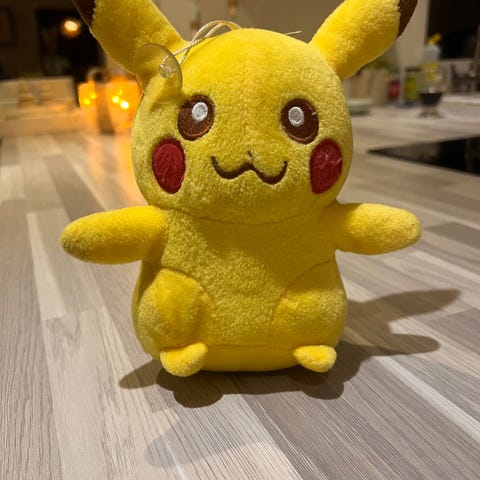 Pokémon Pikachu kosedyr i gult stoffmateriale. Passer som leketøy for barn.