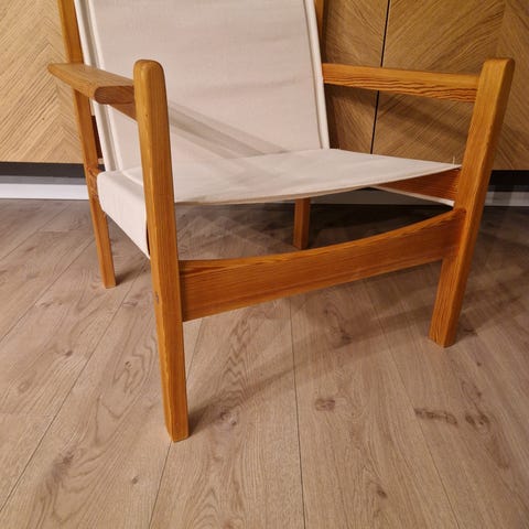 Stolen er kjent for sitt minimalistiske og nøkterne design. Enkel fururamme med spent canvas over.