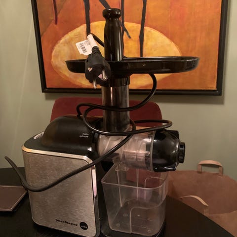 Elektronisk juicepresse, Wilfa JuiceMaster. Brukt noen ganger, men selges da den ikke er brukt på ei stund. Noe misfarget da den har stått bakerst i skapet. Følger med bruksanvisning.