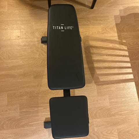 Alt er i god stand og klart til bruk – perfekt for styrketrening hjemme!