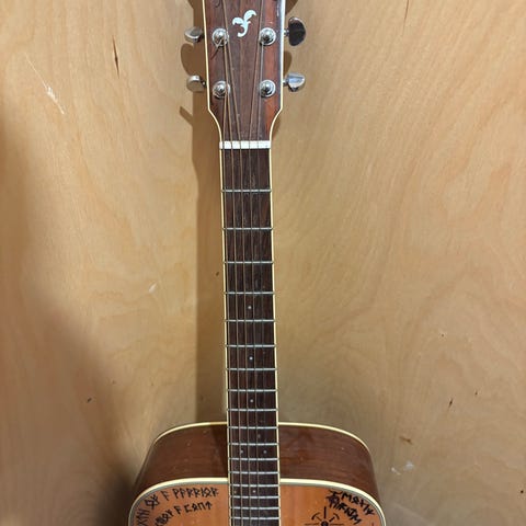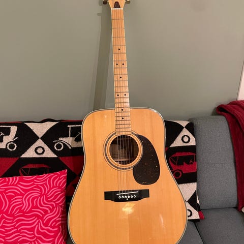 En bra gitar med plekter og alt annet utstyr bra lyd og i god stand.