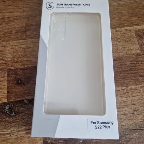 Telefondeksel for S22 Plus-modellen. Dekselet er gjennomsiktig og laget for å beskytte telefonen mot riper og støt.