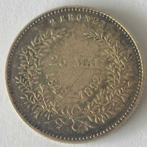 2 kroner Danmark 1905 minnemynt Christian IX sølvmynt