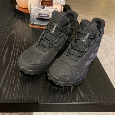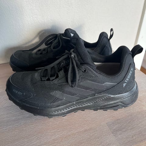 Gå. Vandre. Utforsk. Snør på deg disse terrengskoene fra adidas og legg starten bak deg. Mellomhøyt design for ankelstøtte og en dempet mellomsåle gir langvarig komfort, og gjør disse skoene til den ideelle partneren din på både korte og lange turer. RAIN.RDY holder føttene dine tørre i vått vær, og den kileformede pløsen beskytter mot smuss. De er laget for slitestyrke på lange distanser, og har Traxion-yttersåle for å gi sikkert grep.