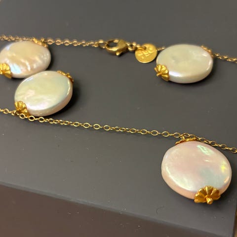 Aldri brukt - Perlekjede med perlemoraktige barokkperler