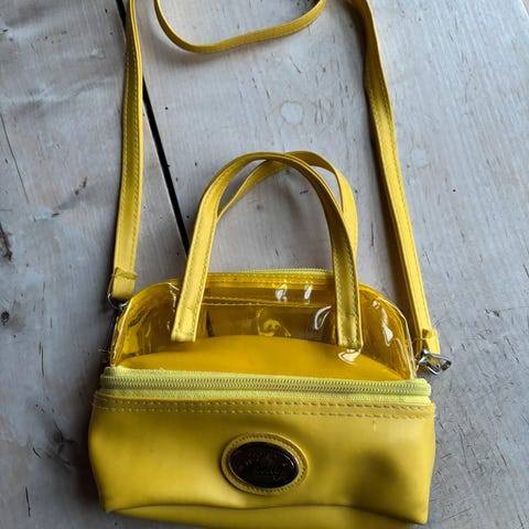 Søt, rund skulderveske fra Djeco med hjort, blomster og sommerfugler i fine farger. Ett rom med glidelås og regulerbar skulderstropp.