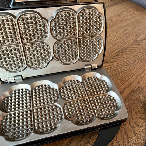 Dobbelt vaffeljern selges, har flere og dette blir for lite brukt.