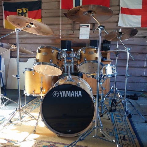 Selges Yamaha 9000 Recording som Shell pack 8 10 12 14 15 og 20 det følger med dobbel tammholder til stortromma og Yamaha originalt stativ til hengetammer 14&15