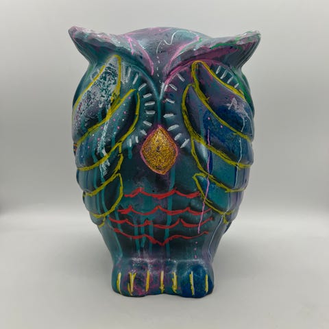 Fargerikt motiv, med passepartout og ramme og glass.