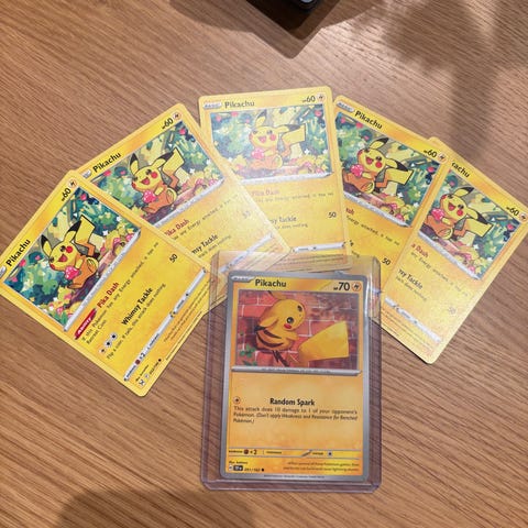 Selger 3 kort holo pikachu. De er tatt rett fra pakken og lagt rett i sleeve. Kortene er i god stand og ta gjerne kontakt for pris og bud:)