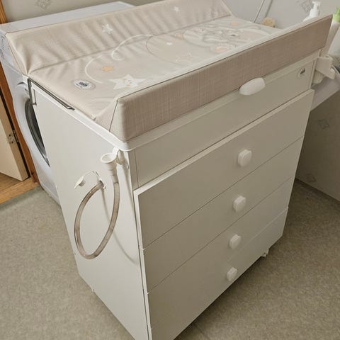 Selges med stellematte og trekk, samt to små oppbevarningsdunker.