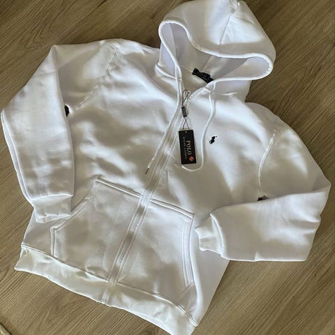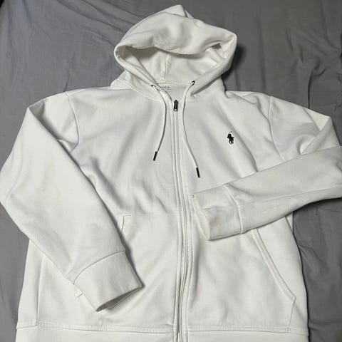Pent brukt svart Polo Ralph Lauren zip-hoodie. Hel og ren, ingen hull eller flekker. Klassisk modell med glidelås, hette og brodert logo på brystet. Komfortabel og passer til hverdagsbruk. Selges da den ikke blir brukt.